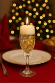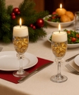 Пориньте в атмосферу теплого святкового вечора з нашою витонченою свічкою в келиху. Прозорий «шампанський» келих, наповнений золотими пластівцями, сяє у вогнях гірлянди — неначе святковий коктейль, створений спеціально для вашого будинку.
