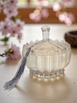 - Виготовлена з натурального соєвого та кокосового воску, вона горить м’яко, чисто й довго, наповнюючи простір делікатним ароматом і атмосферою затишку. Скляна банка з кришкою з прозорого рифленого скла нагадує кришталеву вазу, а сріблястий шовковий кутас додає образу вишуканості та легкого блиску. Свічка стане елегантним акцентом у будь-якому інтер’єрі — на туалетному столику, комоді чи у вітальні. Після використання баночку можна використовувати як скриньку для прикрас або декоративних дрібниць.